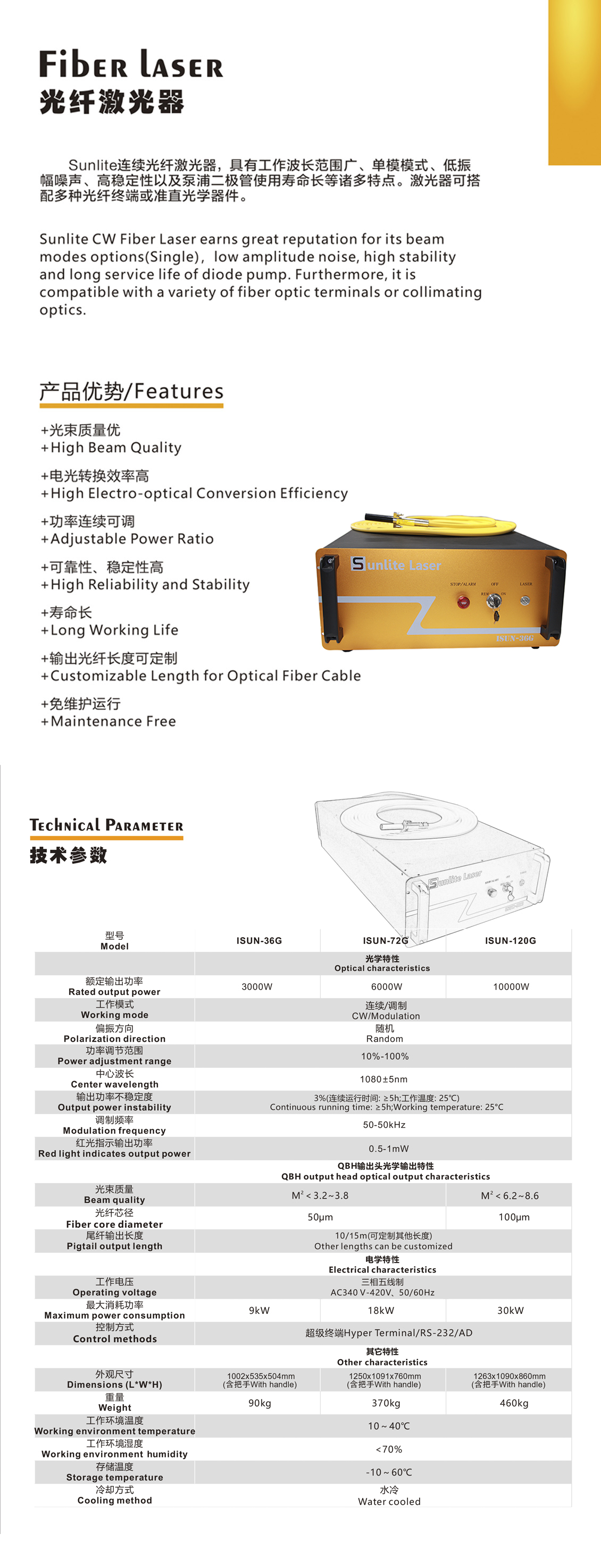 高功率光纤激光器具有转换效率高、光束质量好、结构紧凑、免维护等优点,具有广泛的应用。随着光纤的制造工艺和泵浦光源生产技术的迅速发展,目前掺镱光纤激光器得已广泛应用于工业加工、军事国防和光纤通信等领域。 栅莱特3000W光纤激光器,相比于2000W,产品自身重量增加了15kg,提高了50%的激光能量。其结构设计与性能都有着无比高的性能优势,稳定、高效是该产品的优质表现。同时采用了新型的机械设计,散热性能好,操纵更方便,有着良好的可靠性,用户可根据实际应用设置更广的参数范围10%-100%,满足不同应用场景的加工需求。特别在切割,打孔和焊接方面有着良好的加工效率和加工质量。